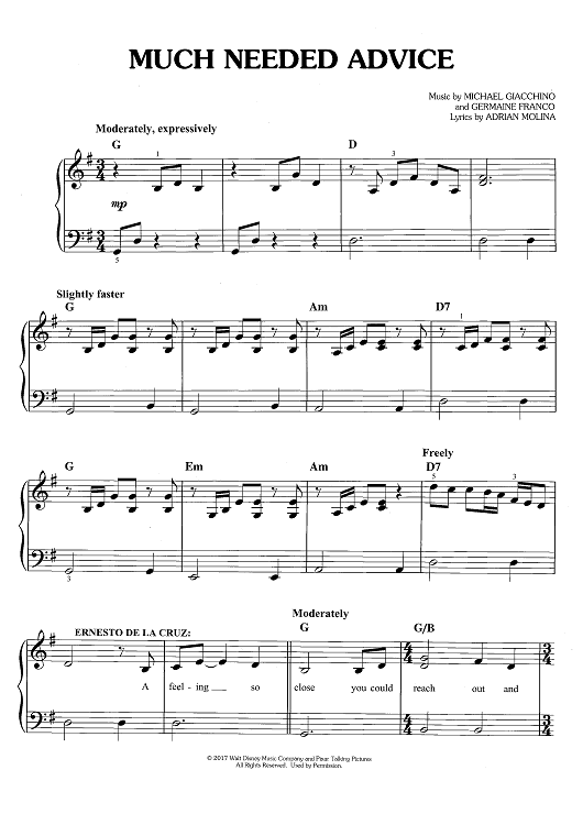 Digital Sheet Music for Much Needed Advice - from COCO by Michael Giacchino, Germaine Franco, Adrian Molina scored for Easy Piano/Vocal/Chords; id:466188
