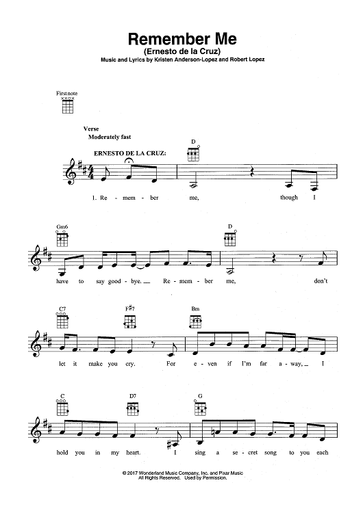 Digital Sheet Music for Remember Me (Ernesto de la Cruz) from COCO by Robert Lopez, Kristen Anderson-Lopez scored for Ukulele; id:466203