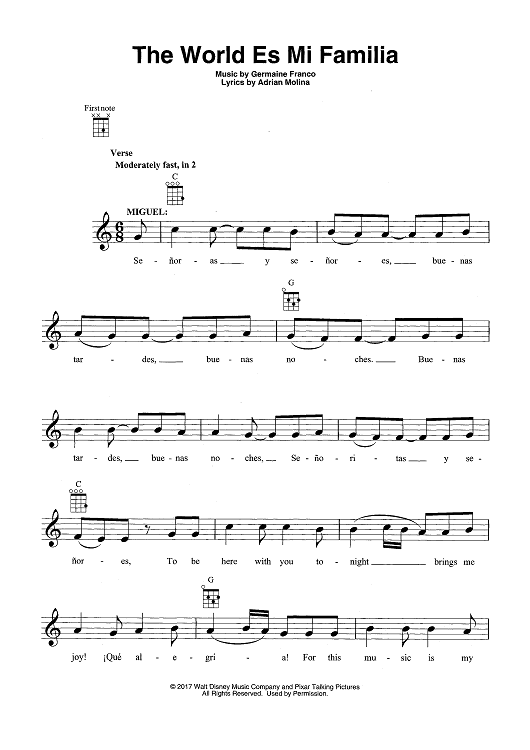 Digital Sheet Music for The World Es Mi Familia - from COCO by Germaine Franco, Adrian Molina scored for Ukulele; id:466202