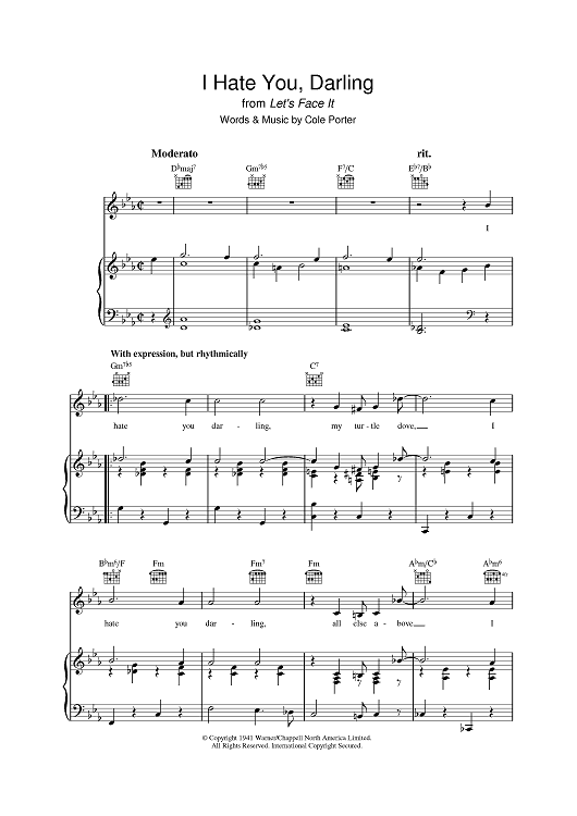 Digital Sheet Music for I Hate You, Darling by Cole Porter scored for Piano/Vocal/Chords; id:397817