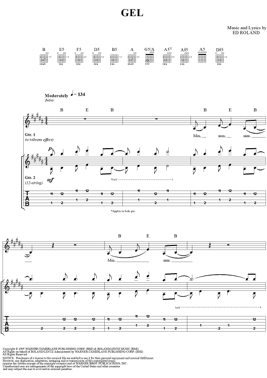 Digital Sheet Music for Gel by Collective Soul, Ed Roland scored for Guitar Tab/Vocal; id:255549