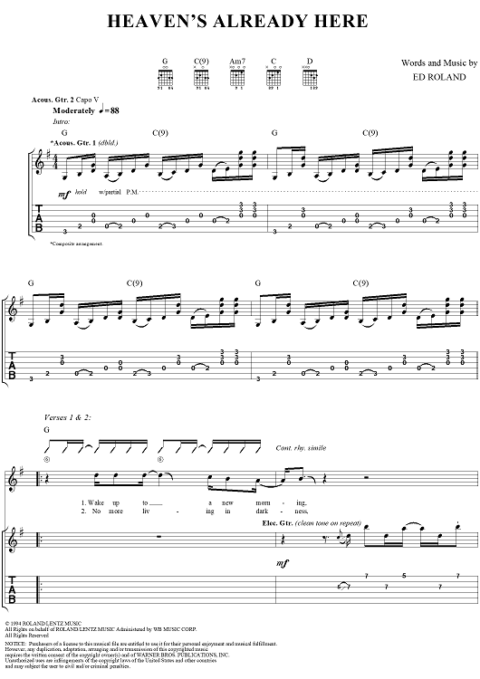 Digital Sheet Music for Heaven's Already Here by Collective Soul, Ed Roland scored for Guitar Tab/Vocal; id:287040