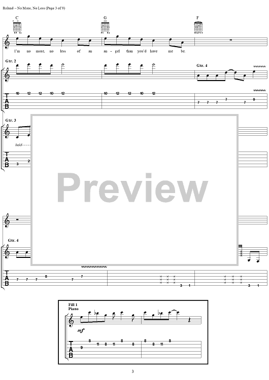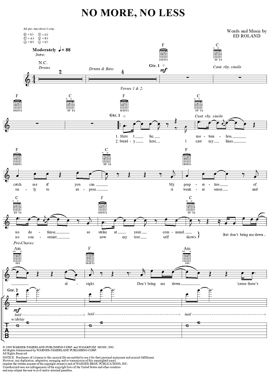 Digital Sheet Music for No More, No Less by Collective Soul, Ed Roland scored for Guitar Tab/Vocal; id:241204