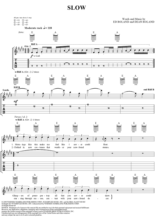 Digital Sheet Music for Slow by Collective Soul, Ed Roland, Dean Roland scored for Guitar Tab/Vocal; id:241208