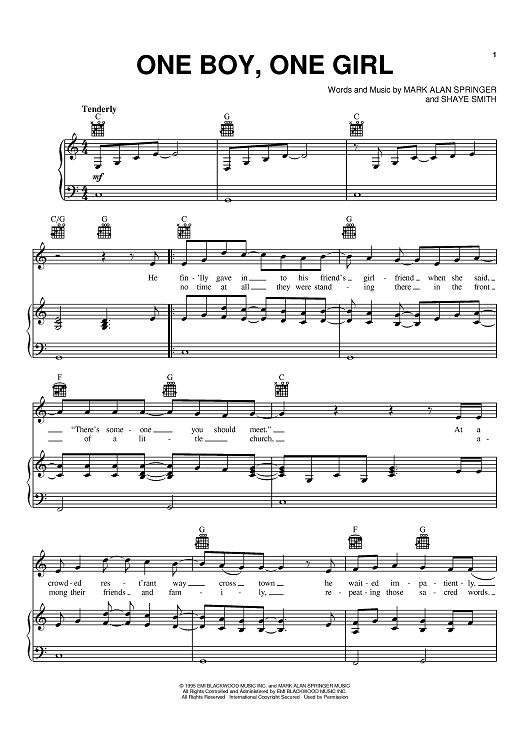 Digital Sheet Music for One Boy, One Girl by Collin Raye, Mark Alan Springer, Shaye Smith scored for Piano/Vocal/Chords; id:396259