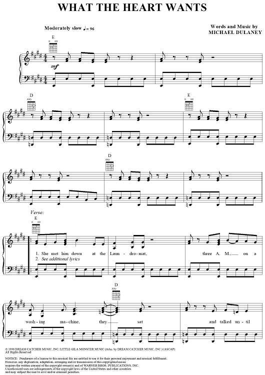 Digital Sheet Music for What the Heart Wants by Collin Raye, Michael Dulaney scored for Piano/Vocal/Chords; id:112287