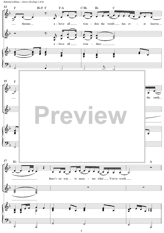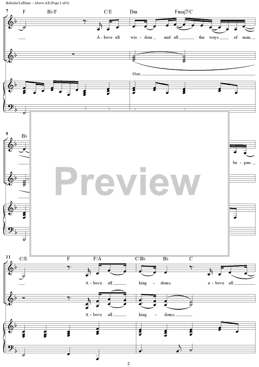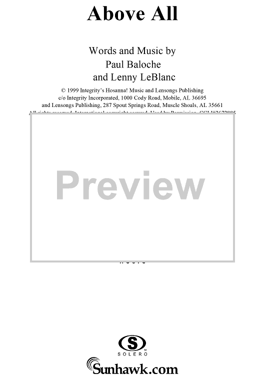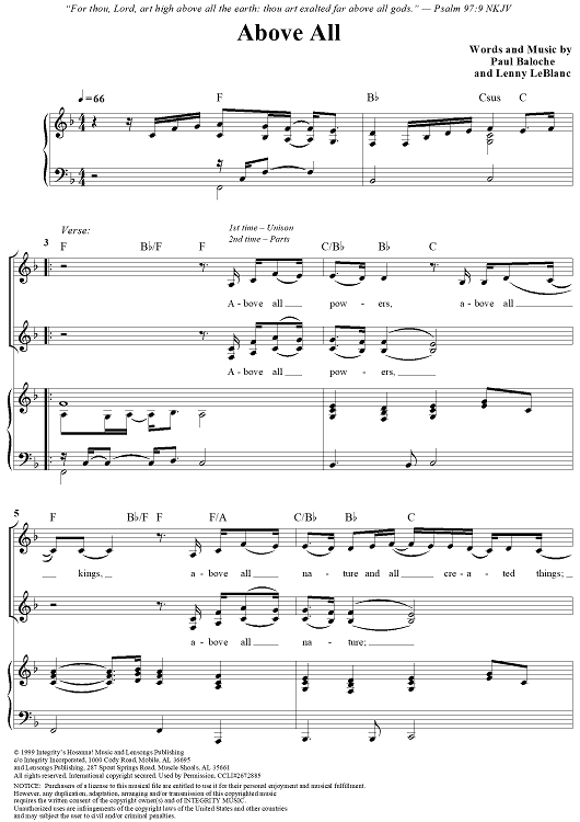 Digital Sheet Music for Above All by Lenny LeBlanc, Paul Baloche scored for Mixed Chorus/Piano; id:283188
