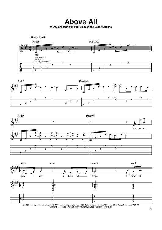 Digital Sheet Music for Above All by Rebecca St. James, Lenny LeBlanc, Paul Baloche scored for Guitar Tab; id:394867