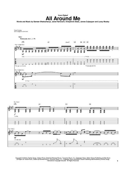 Digital Sheet Music for All Around Me by Sameer Bhattacharya, James Culpepper, Flyleaf, Jared Hartmann, Lacey Mosley, Kirkpatrick Seals scored for Guitar Tab; id:395105