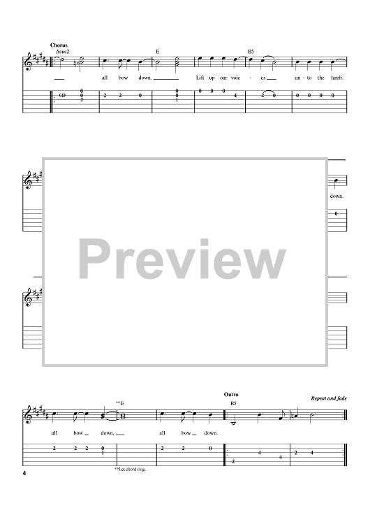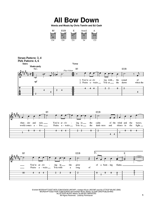 Digital Sheet Music for All Bow Down by Chris Tomlin, Ed Cash scored for Easy Guitar Tab; id:395300
