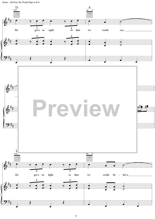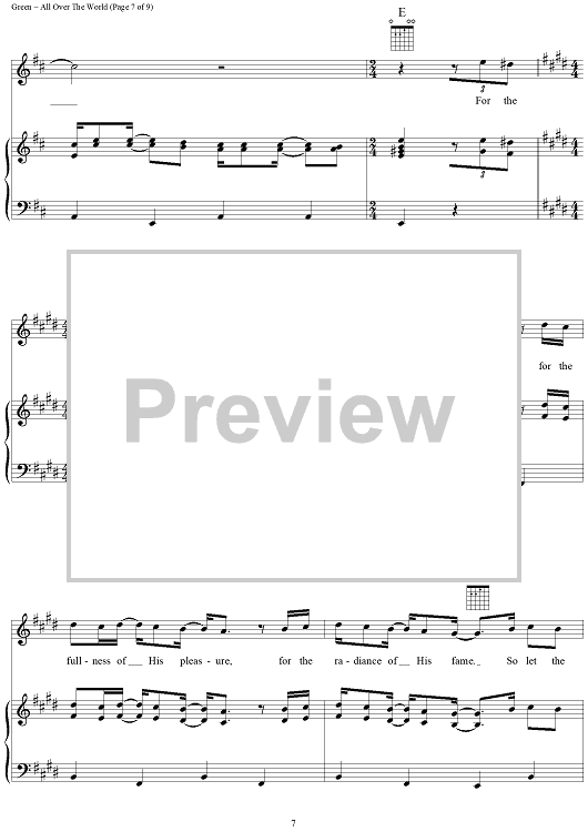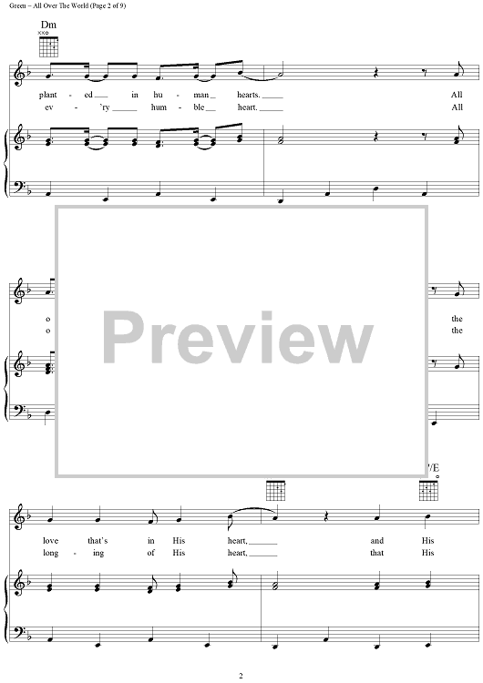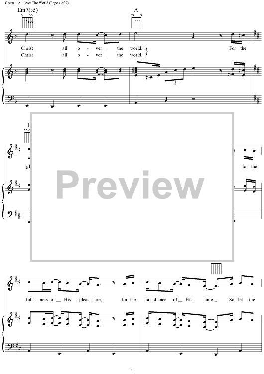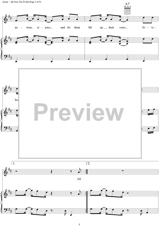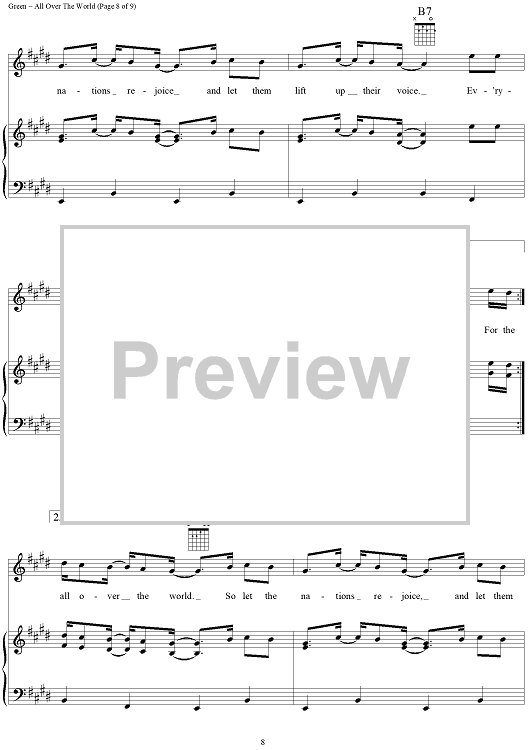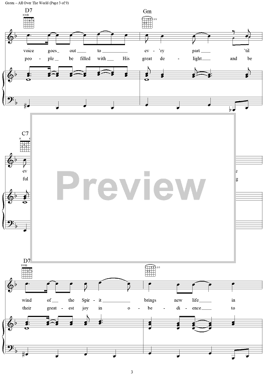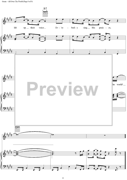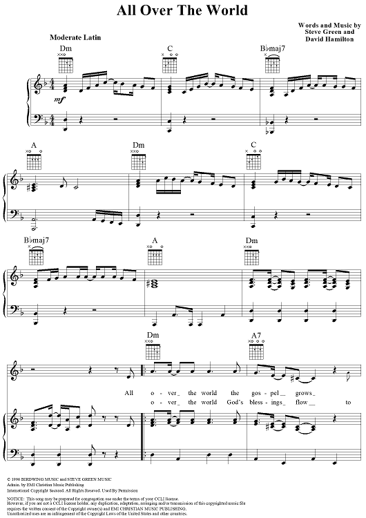 Digital Sheet Music for All Over the World by Steve Green, David Hamilton scored for Piano/Vocal/Chords; id:119334