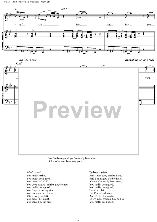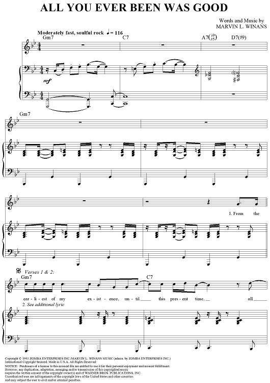 Digital Sheet Music for All You Ever Been Was Good by Marvin L. Winans, The Winans scored for Piano/Vocal/Chords; id:264160