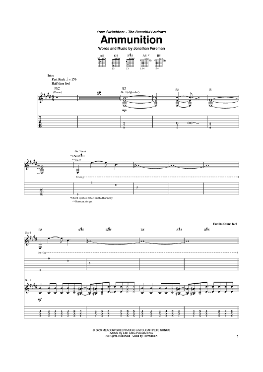 Digital Sheet Music for Ammunition by Jonathan Mark Foreman, Switchfoot scored for Guitar Tab; id:381965