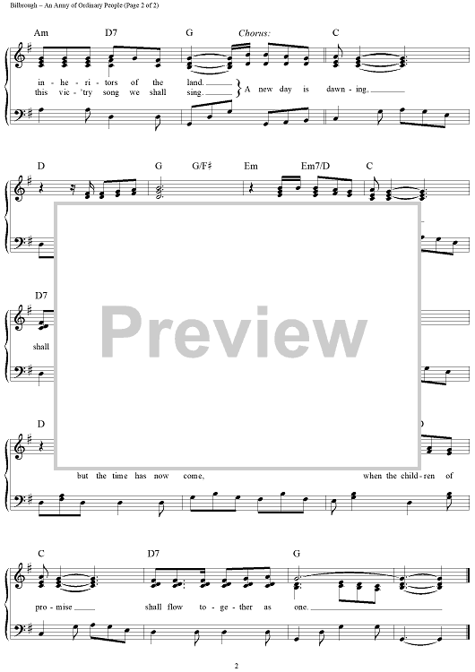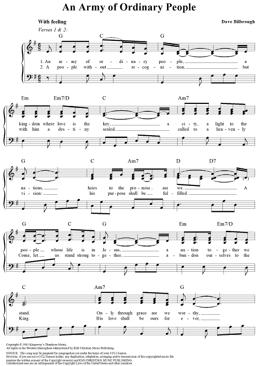Digital Sheet Music for An Army of Ordinary People by Dave Bilbrough scored for Piano/Vocal/Chords; id:191429