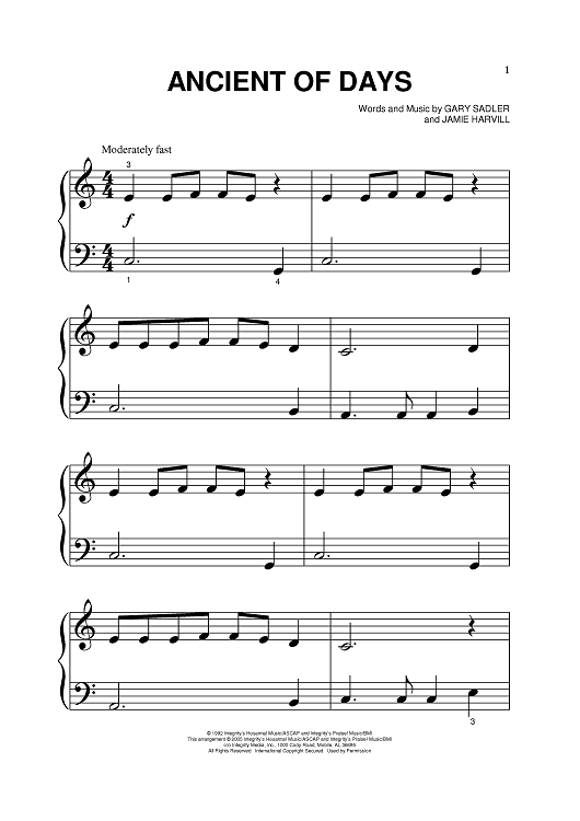 Digital Sheet Music for Ancient Of Days by Gary Sadler, Petra, Jamie Harvill scored for Piano; id:387390