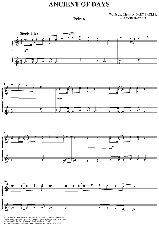 Digital Sheet Music for Ancient Of Days by Gary Sadler, Petra, Jamie Harvill scored for 1 Piano, 4 Hands; id:393380