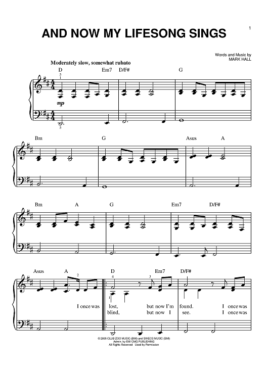 Digital Sheet Music for And Now My Lifesong Sings by Mark Hall, Casting Crowns scored for Easy Piano; id:390611