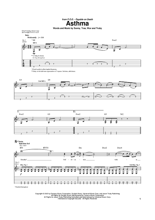 Digital Sheet Music for Asthma by Payable On Death scored for Guitar Tab; id:374079