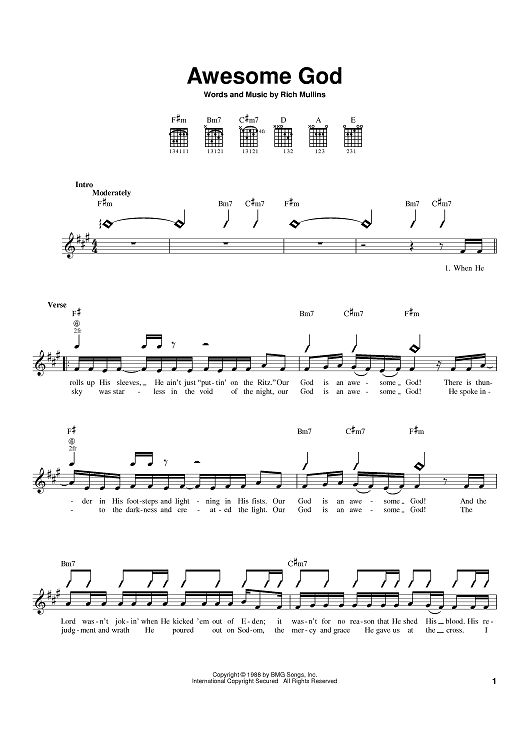 Digital Sheet Music for Awesome God by Rich Mullins scored for Lead Sheet with Guitar Grids; id:372187