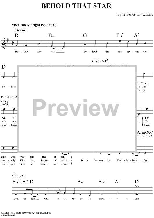 Digital Sheet Music for Behold That Star by Thomas W. Talley scored for Lead Sheet; id:259631