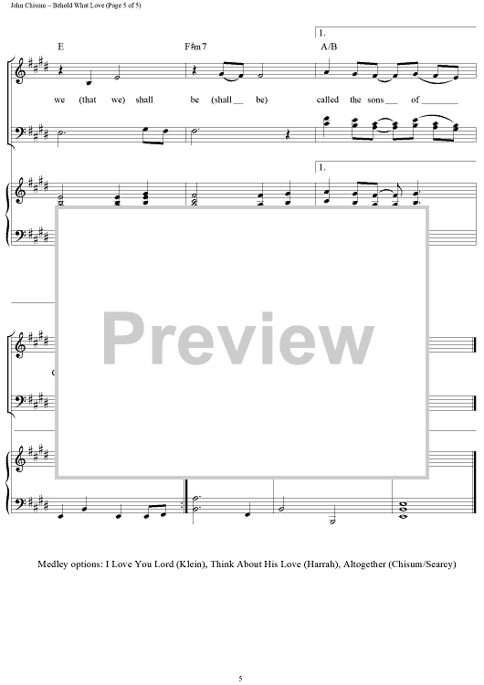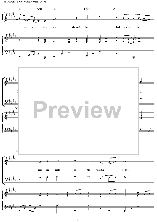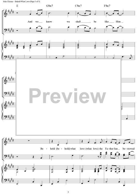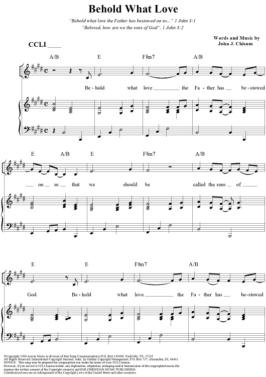 Digital Sheet Music for Behold What Love by John Chisum scored for Piano/Vocal/Chords; id:95621