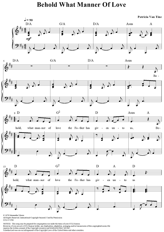 "Behold What Manner of Love" Sheet Music by Patricia Van Tine