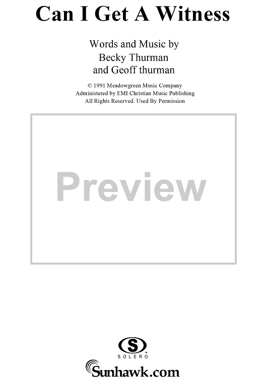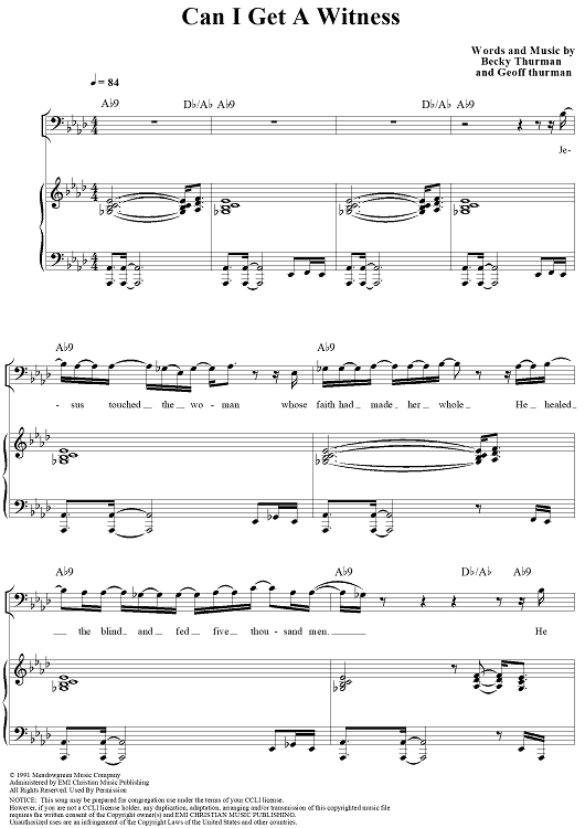Digital Sheet Music for Can I Get a Witness by Geoffrey P. Thurman, Becky Thurman, Phillips, Craig and Dean scored for Piano/Vocal/Chords; id:119589