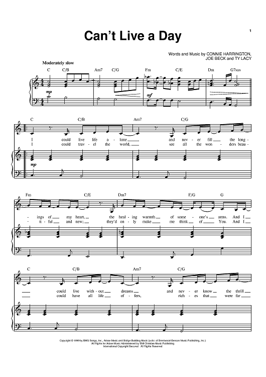Digital Sheet Music for Can't Live A Day by Connie Harrington, Ty Lacy, Avalon, Joe Beck scored for Piano/Vocal/Chords; id:370078