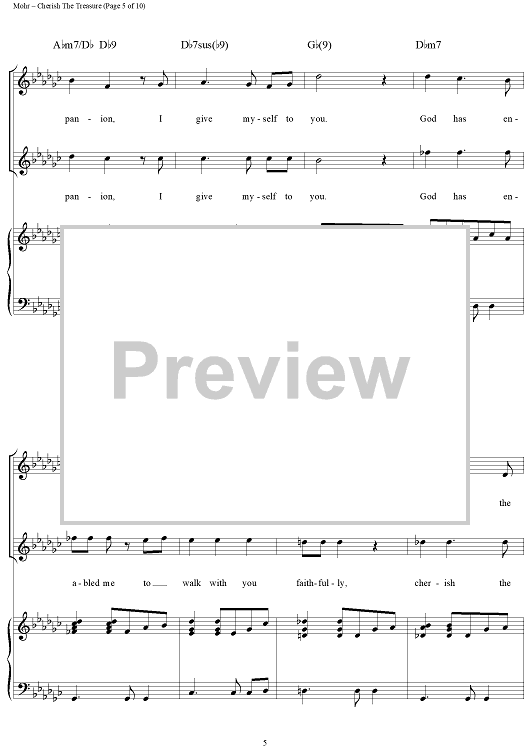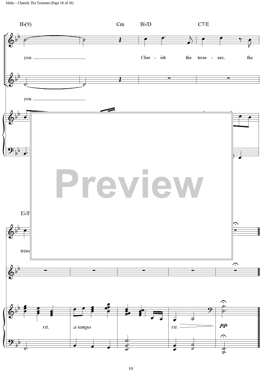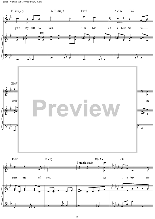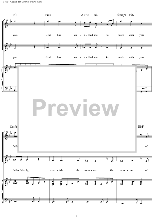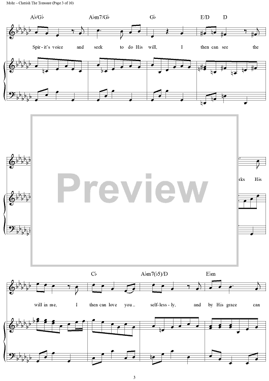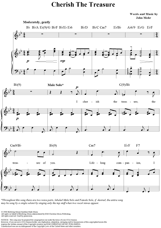 Digital Sheet Music for Cherish the Treasure by Jon Mohr, Steve Green scored for Piano/Vocal/Chords; id:119318