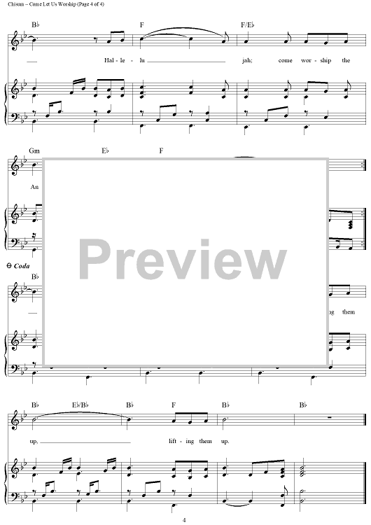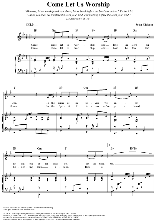 Digital Sheet Music for Come Let Us Worship by John Chisum scored for Piano/Vocal/Chords; id:111516