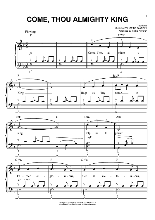 Digital Sheet Music for Come, Thou Almighty King by Felice de Giardini, Phillip Keveren scored for Easy Piano; id:382295