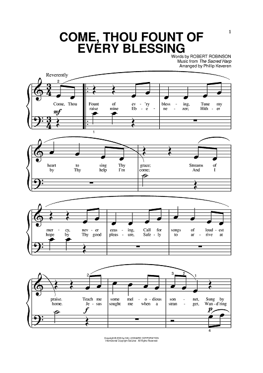 Digital Sheet Music for Come, Thou Fount of Every Blessing by Robert Robinson, Phillip Keveren scored for Big Note Piano; id:385023