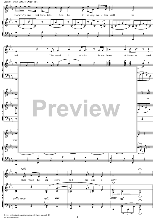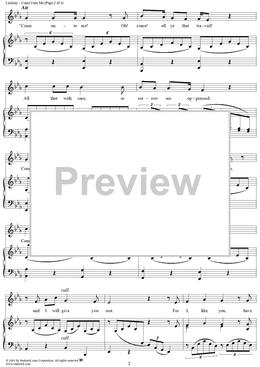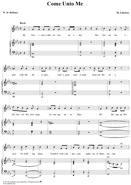 Digital Sheet Music for Come Unto Me by M. Lindsay, W. H. Bellamy scored for Piano/Vocal; id:265575