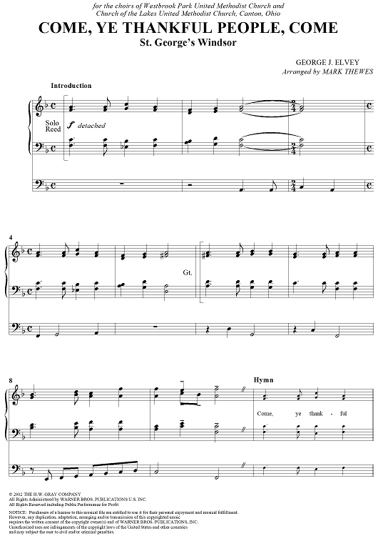 Digital Sheet Music for Come, Ye Thankful People, Come by George J. Elvey, Mark Thewes scored for Organ Solo; id:287259