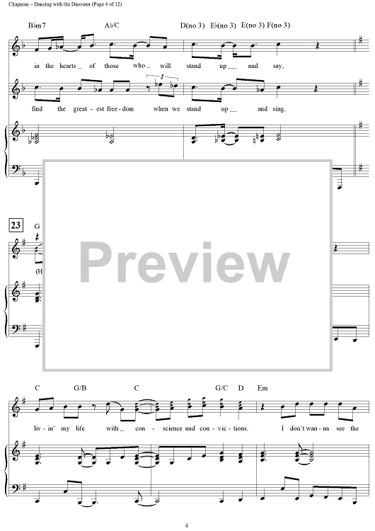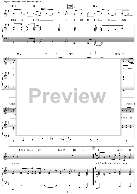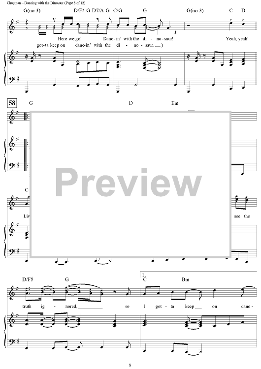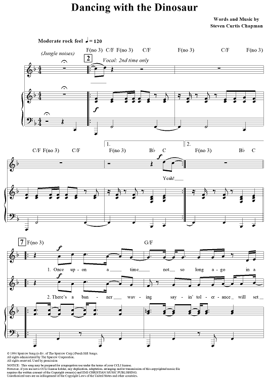 Digital Sheet Music for Dancing with the Dinosaur by Steven Curtis Chapman scored for Piano/Vocal/Chords; id:119394