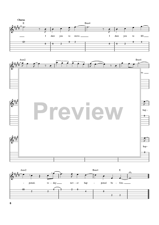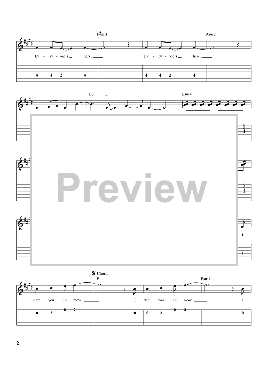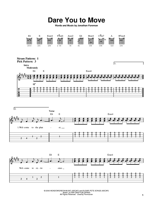 Digital Sheet Music for Dare You To Move by Jonathan Mark Foreman, Switchfoot scored for Easy Guitar Tab; id:385222