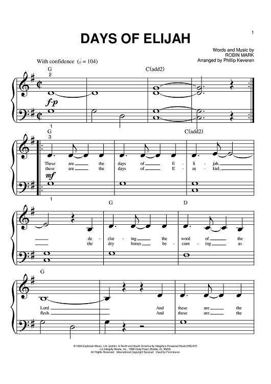 Digital Sheet Music for Days Of Elijah by Robin Mark, Phillip Keveren scored for Big Note Piano; id:396890