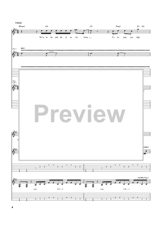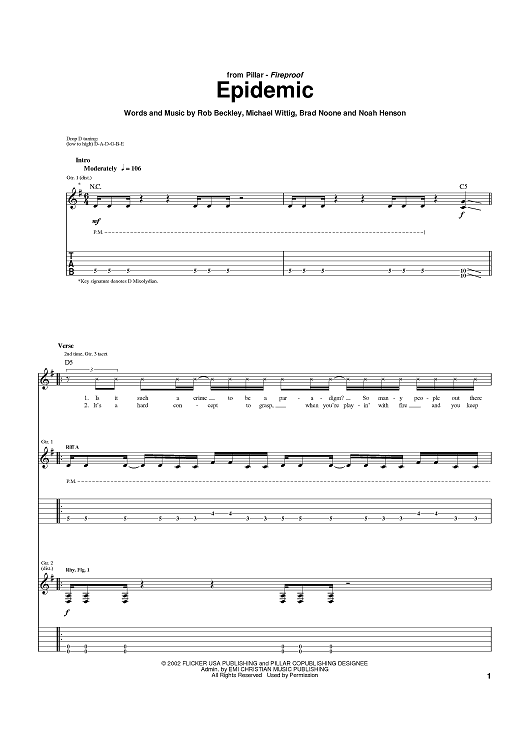 Digital Sheet Music for Epidemic by Rob Beckley, Brad Noone, Pillar, Kalel scored for Guitar Tab; id:372732