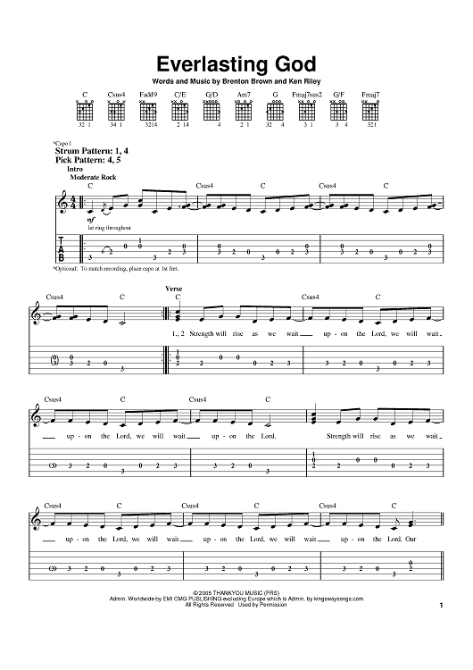 Digital Sheet Music for Everlasting God by Chris Tomlin, Lincoln Brewster, Brenton Brown, Ken Riley scored for Easy Guitar Tab; id:396959