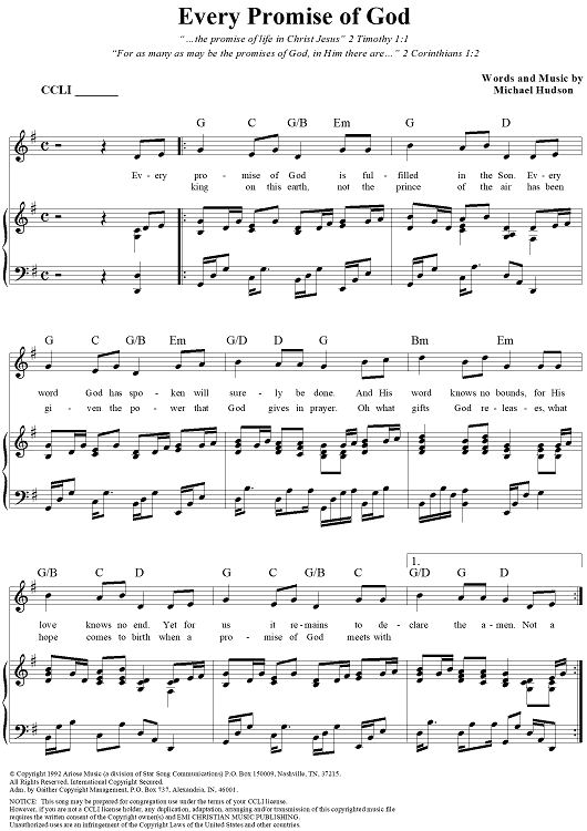 Digital Sheet Music for Every Promise of God by Michael Hudson scored for Piano/Vocal/Chords; id:111862