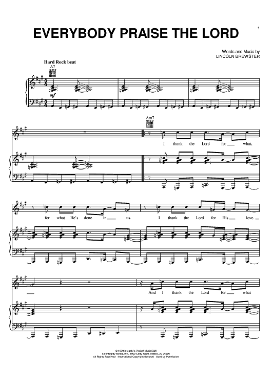 Digital Sheet Music for Everybody Praise The Lord by Lincoln Brewster scored for Piano/Vocal/Chords; id:395142