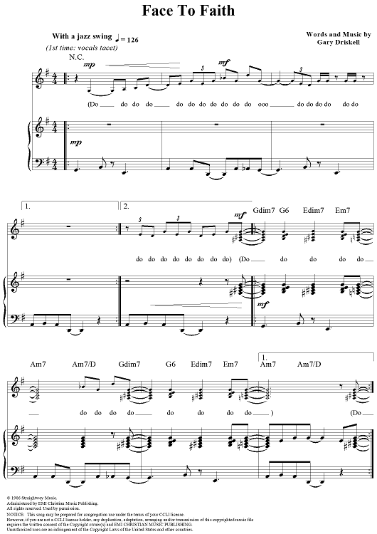 Digital Sheet Music for Face to Faith by Gary Driskell, Sandi Patty scored for Piano/Vocal/Chords; id:115736