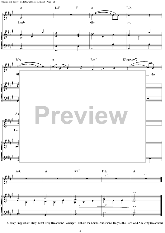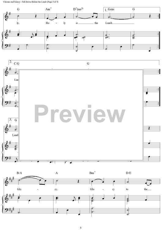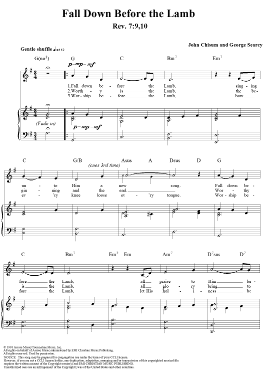 Digital Sheet Music for Fall Down Before the Lamb by John Chisum, George Searcy scored for Piano/Vocal/Chords; id:95942