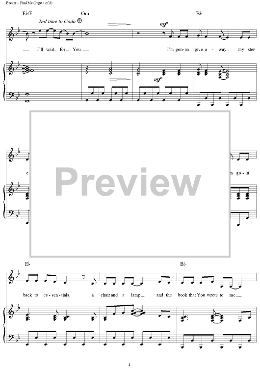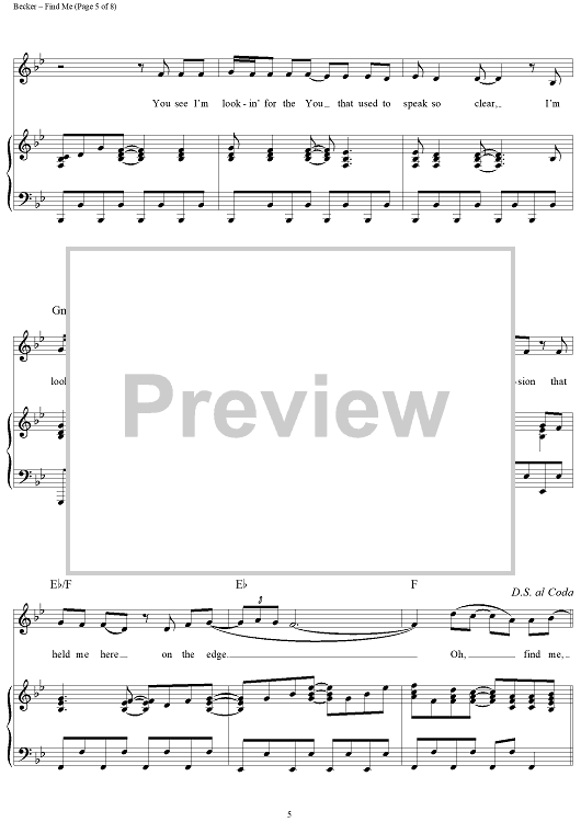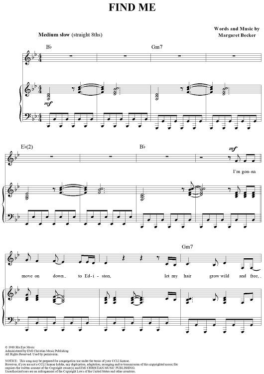 Digital Sheet Music for Find Me by Margaret Becker scored for Piano/Vocal/Chords; id:119160