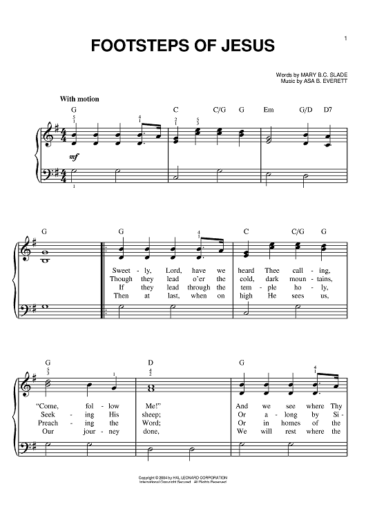 Digital Sheet Music for Footsteps Of Jesus by Asa B. Everett, Mary B.C. Slade scored for Easy Piano; id:381083