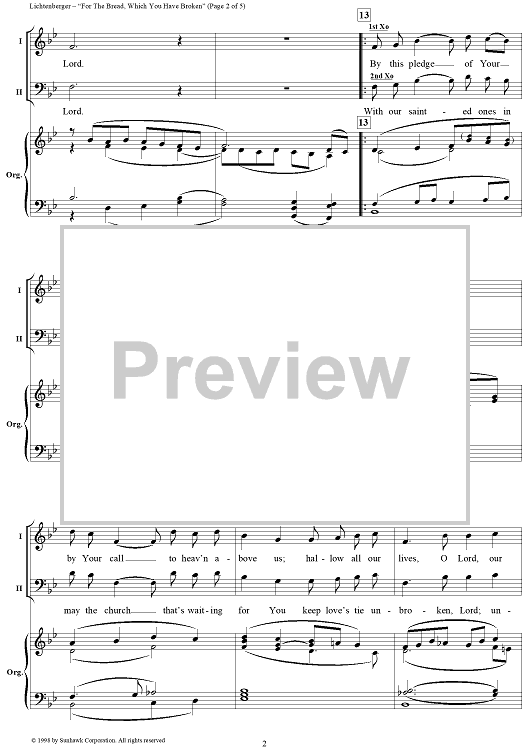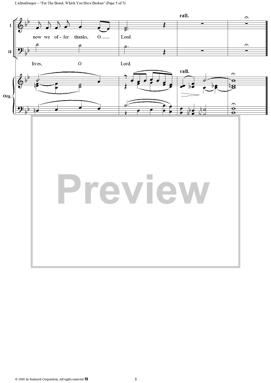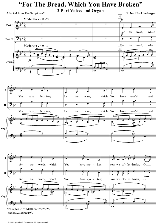 Digital Sheet Music for For the Bread, Which You Have Broken by Robert Lichtenberger scored for Assorted Instruments; id:96031