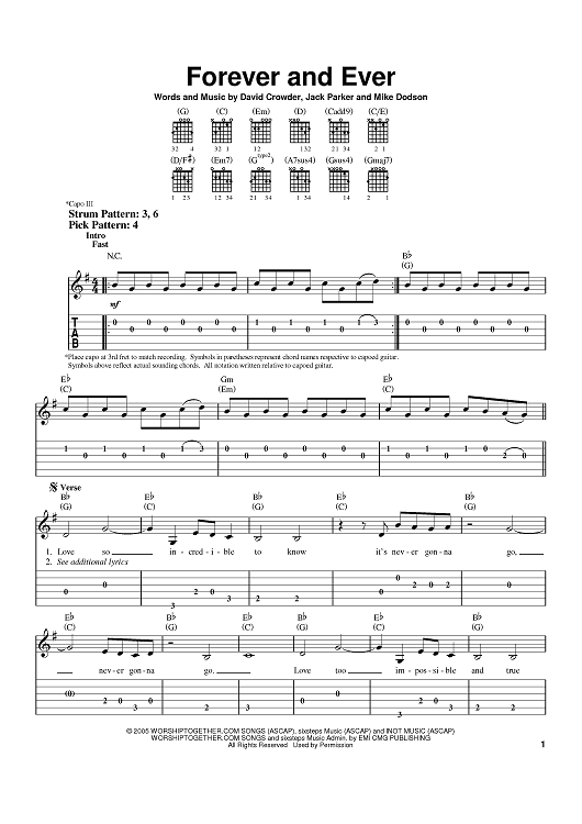 Digital Sheet Music for Forever And Ever by Jack Parker, David Crowder, David Crowder Band, Mike Dodson scored for Easy Guitar Tab; id:389456