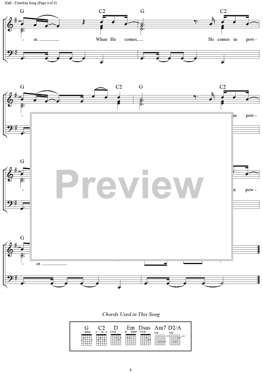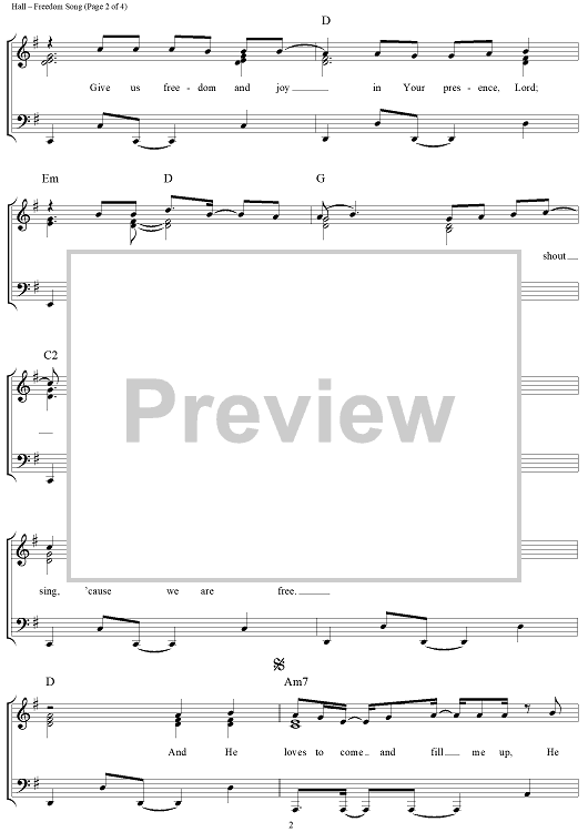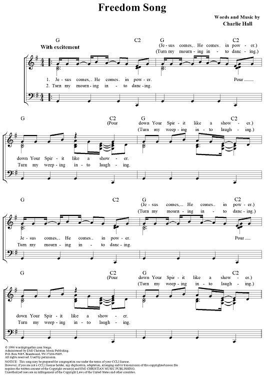Digital Sheet Music for Freedom Song (Passion Version) by Charlie Hall scored for Piano/Vocal/Chords; id:113966