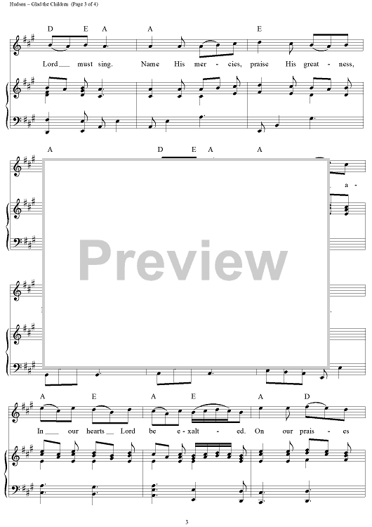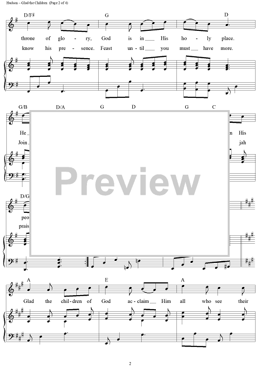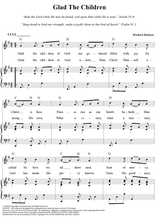 Digital Sheet Music for Glad The Children by Michael Hudson scored for Piano/Vocal/Chords; id:111686