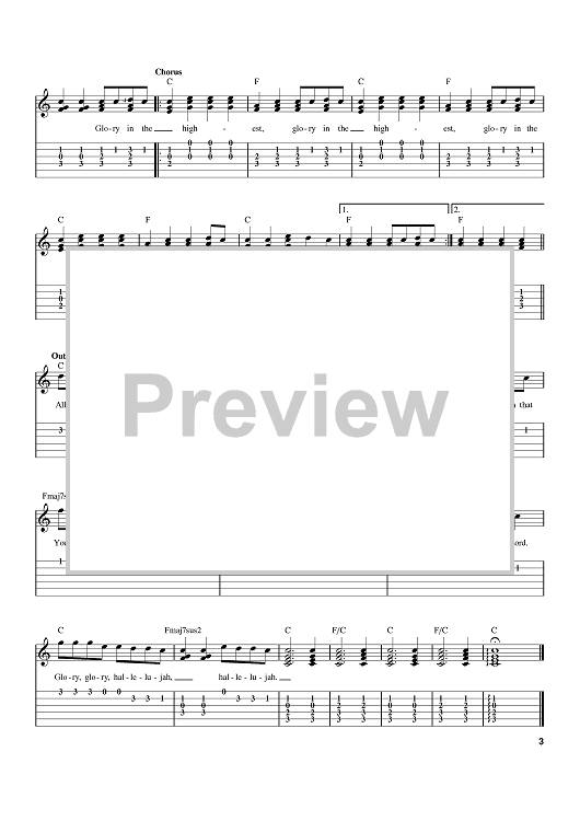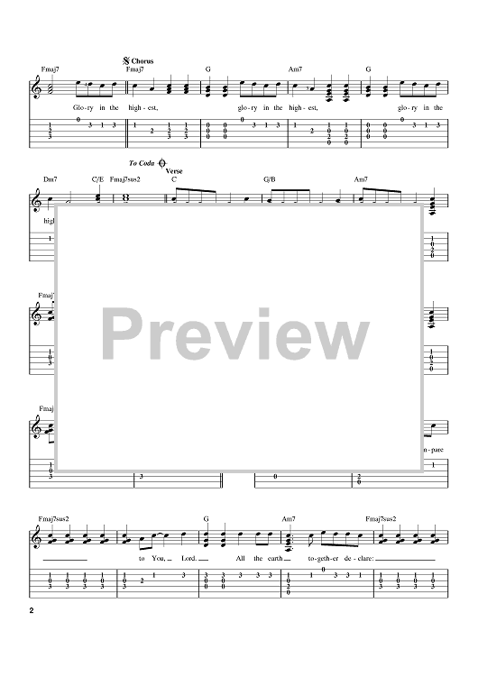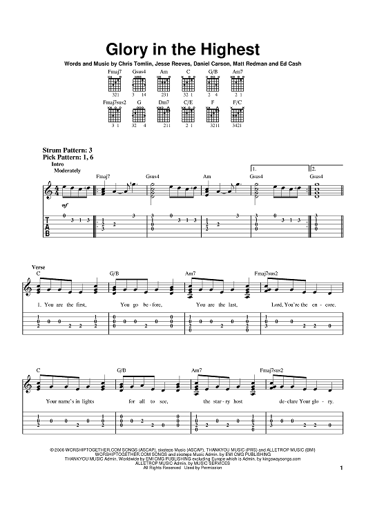Digital Sheet Music for Glory In The Highest by Matt Redman, Chris Tomlin, Jesse Reeves, Brenton Brown, Ed Cash, Daniel Carson scored for Easy Guitar Tab; id:396966